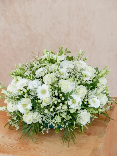 Parce que chaque geste compte, nous choisissons des fleurs fraîches et de saison, et assurons la livraison directement sur le lieu de la cérémonie ou au domicile des proches.